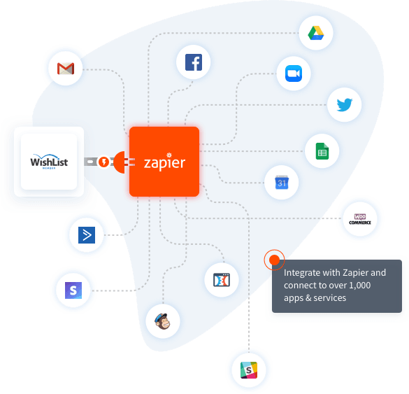 Zapier is an online service that connects your software and helps you handle work automatically, so you can focus on what really matters. You can connect your WishList Member™ website to over 1,500 other apps including Gmail, Facebook, ClickFunnels, Google Docs, Zoom and more. Automate repetitive tasks, track your site in ways you never could before and unleash your creativity.
