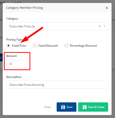 The price for the selected membership level is the specific amount you enter into the Amount field. The screenshot example below shows a Global Price with the set Fixed Price of $10.