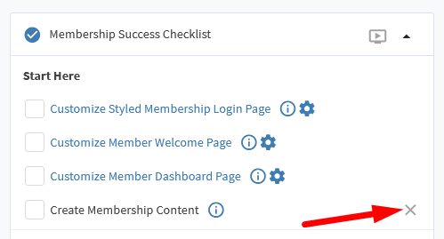 The Membership Success Checklist appears on the WishList Member dashboard. It displays what you have set up and provides information on potential next steps you can take.