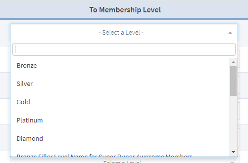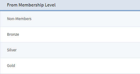 This is the membership level the members are currently in. If you select the Move action, members will be removed from this membership level and placed into the level specified in the To Membership Level option. If you select the Add action, members will remain in this level but also be placed into the level specified in the To Membership Level option.