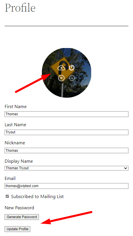 The member can update their profile picture, set a new password or adjust any of the other available fields. Once they are finished, they just need to click the Update Profile button and they are all set.