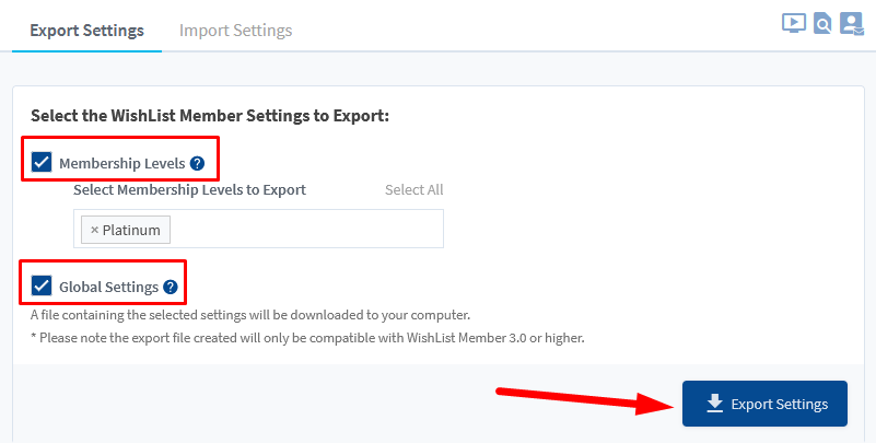 Global Settings. If enabled, all settings saved in WishList Member that are not specific to membership levels will be included in the export file.