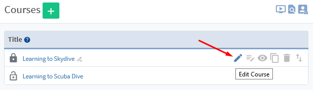 Click the Course Title or the pencil icon in the Courses > Course Builder section to edit the Course.