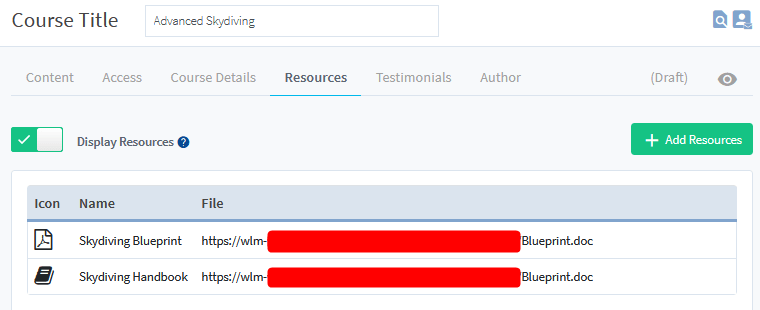 Display Resources: If enabled, any resources in this section will be displayed on the course page.
