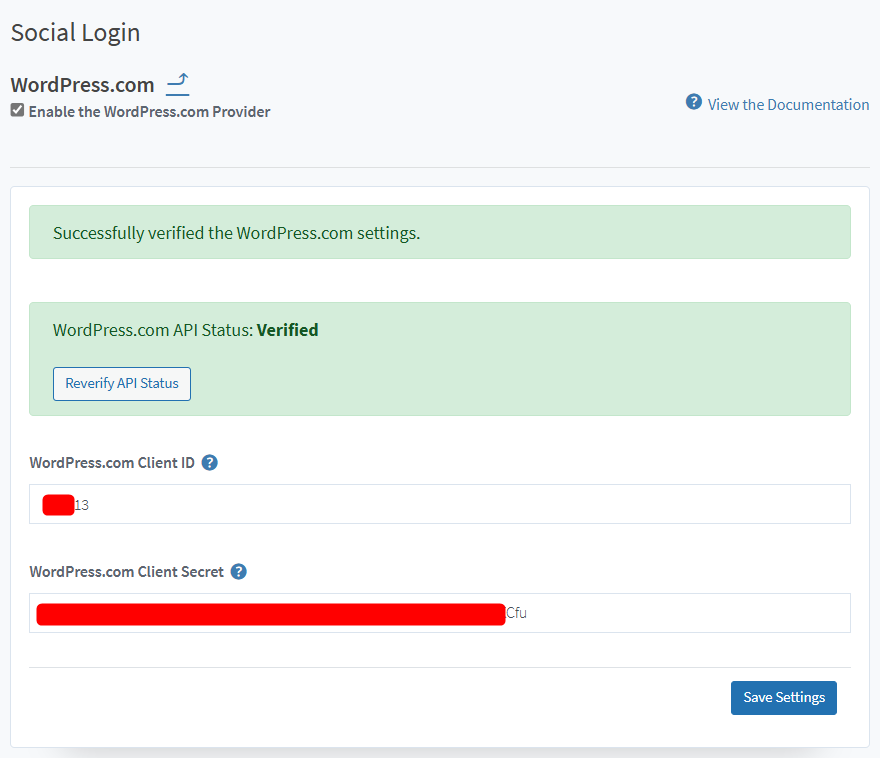 Once you have saved the Client ID and Client Secret, click the Verify Settings button to confirm the integration.