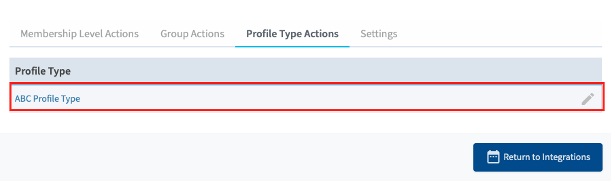 3. The Editing Profile Type Actions box to configure the Profile Type will appear.