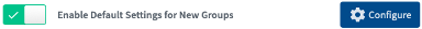 1. Enable the Enable Default Settings for New Groups toggle. The corresponding Configure button will then become available.