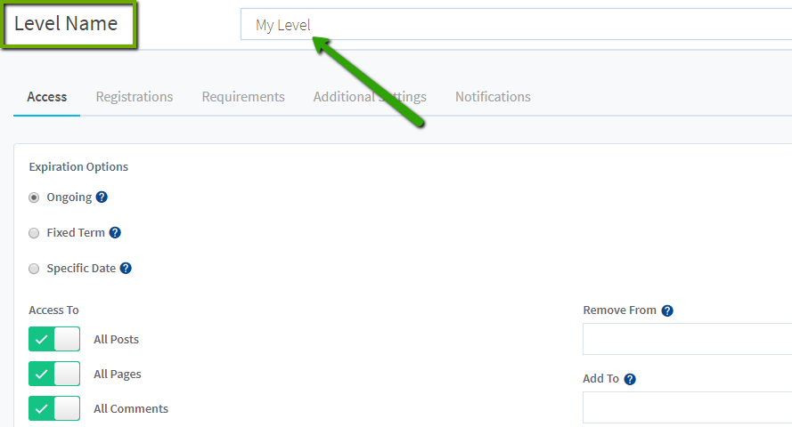 You will now be returned to your list of membership levels on the “Membership Levels” screen. Here, you can create another new level or edit any of your existing levels.