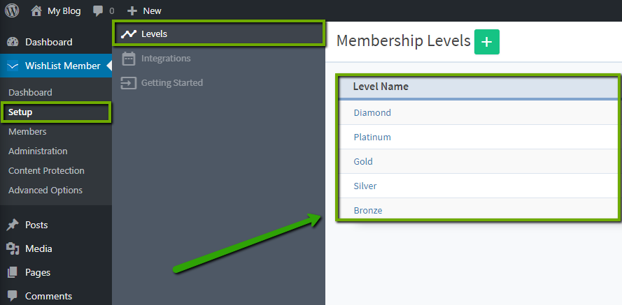 To edit an existing membership level, navigate to the WishList Member menu on the left-hand side of WordPress. Select “Setup” and then “Levels”. You will see a list of your existing membership levels. Click the one you'd like to edit.