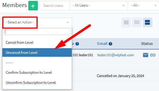 You can also select one or multiple members to be uncancelled from a level by clicking the checkbox beside the member(s) to select them…