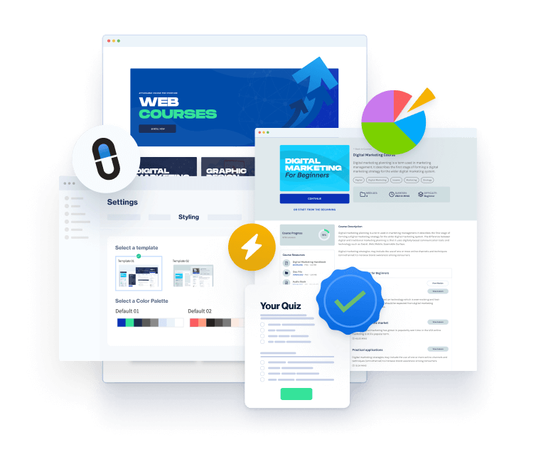 Create your course, your way with fully customizable templates. From a simple set of quizzes, to an extensive program, make it happen with CourseCure. Any learning style, any goal.